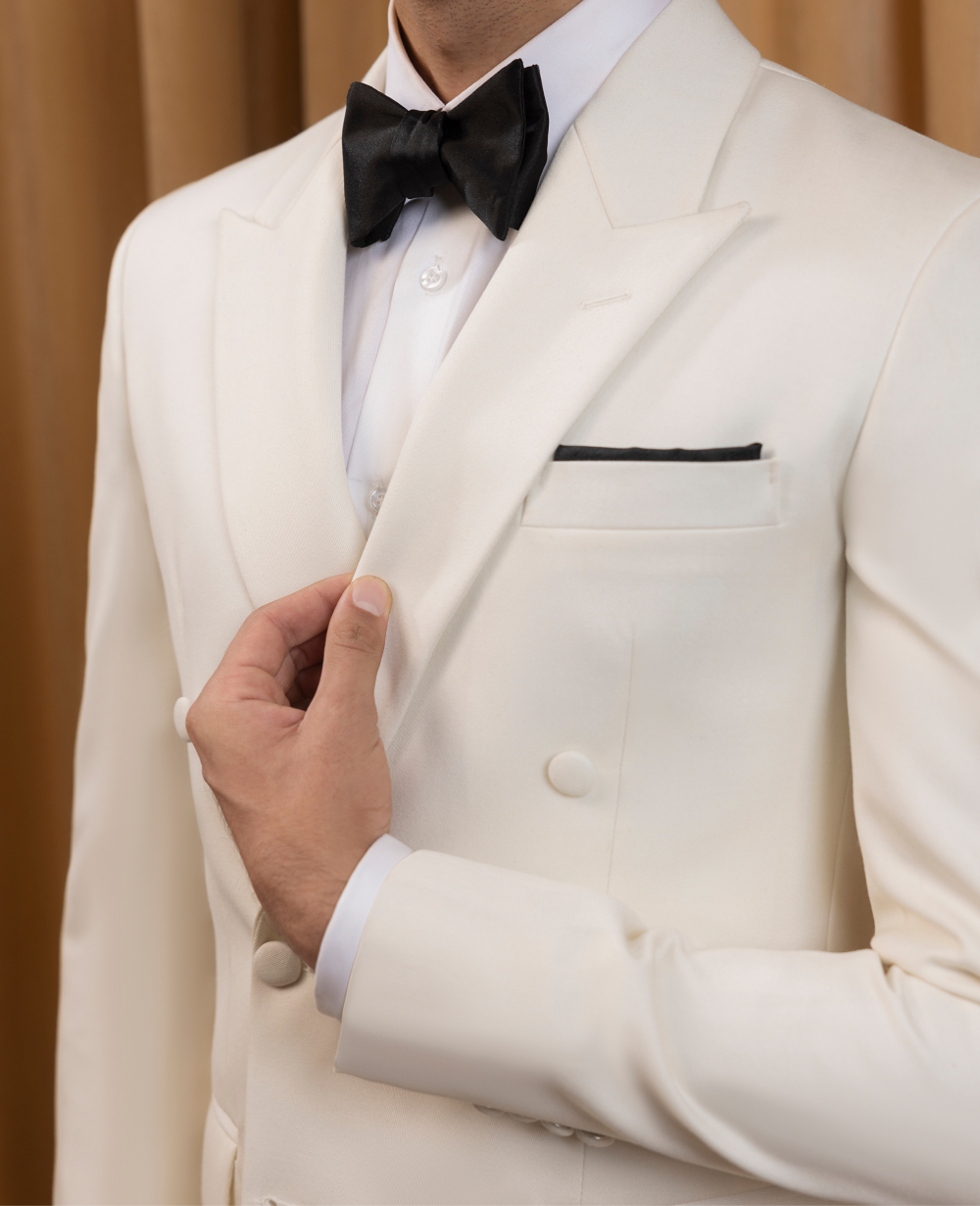 Classic White Double Breasted Tuxedo Jacket / Black Trousers