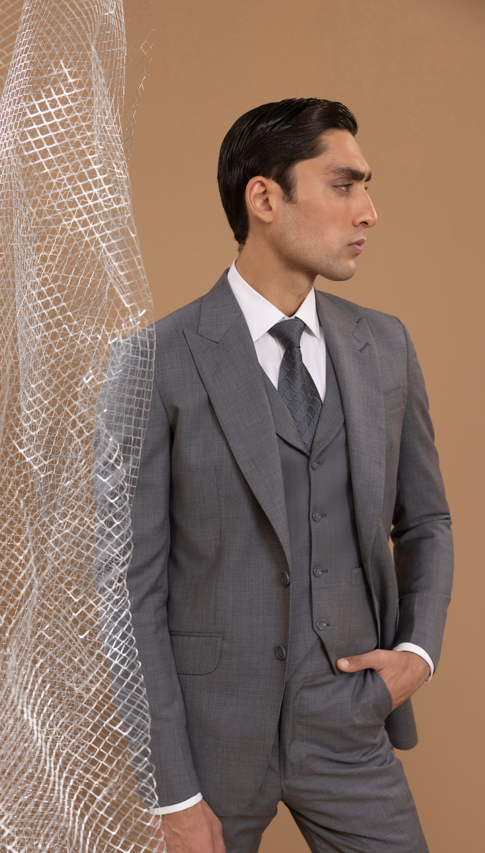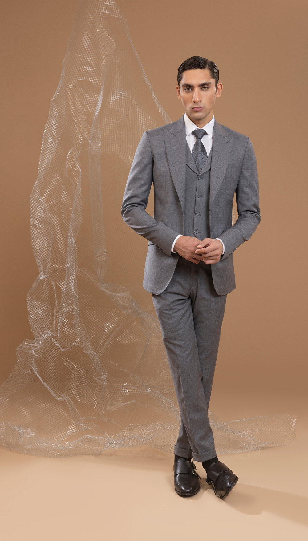 This classic 3-piece grey suit is an essential addition to any wardrobe. Its versatile grey tone makes it suitable for a variety of occasions, from business meetings to formal events. Crafted from high-quality fabric, this suit offers both comfort and style, ensuring a polished look that never goes out of fashion.