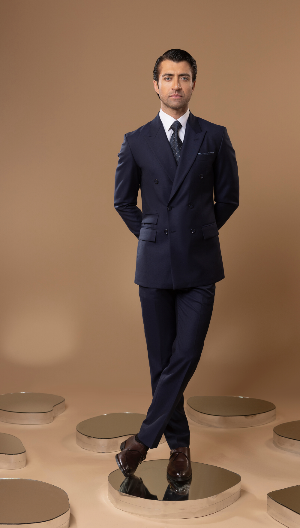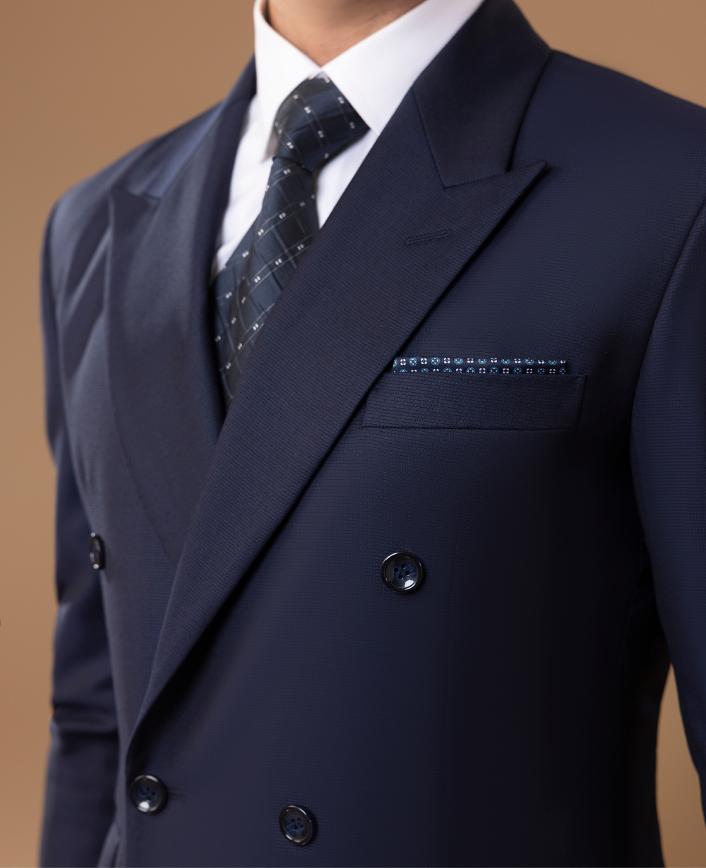Textured Navy Double Breasted Suit – 2PC