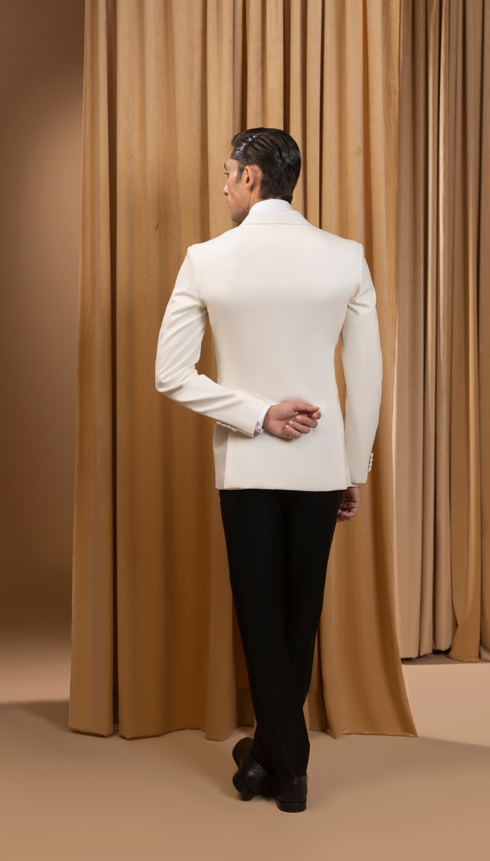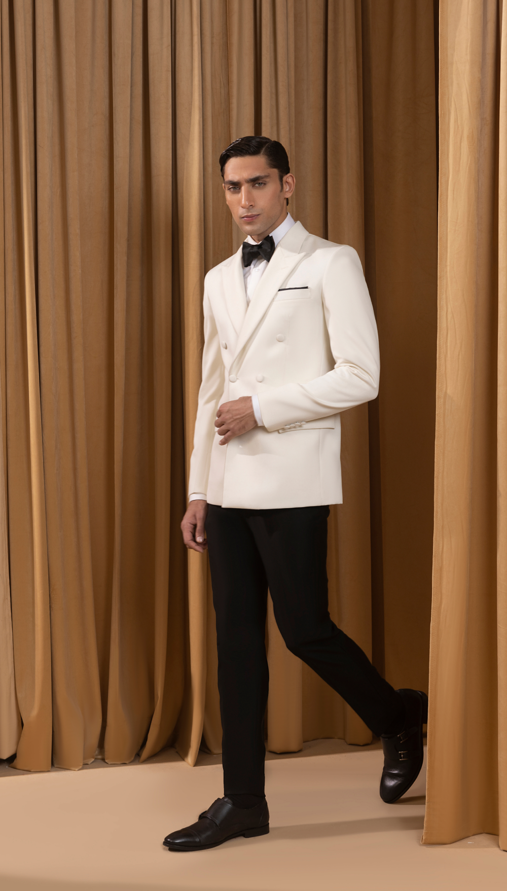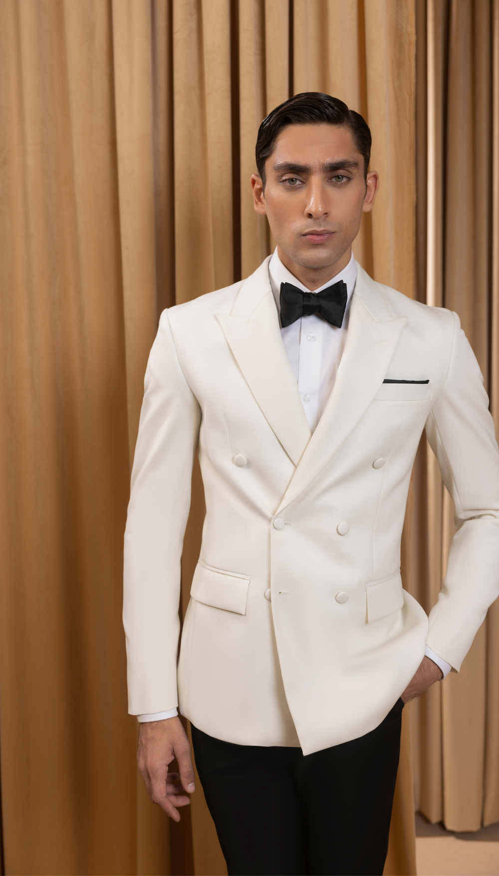 Elevate your formalwear with our classic white double-breasted tuxedo jacket, paired with black trousers. This look is designed for elegance and sophistication, making it ideal for black-tie events, weddings, and upscale gatherings. The double-breasted design adds a refined touch, ensuring you make a lasting impression.