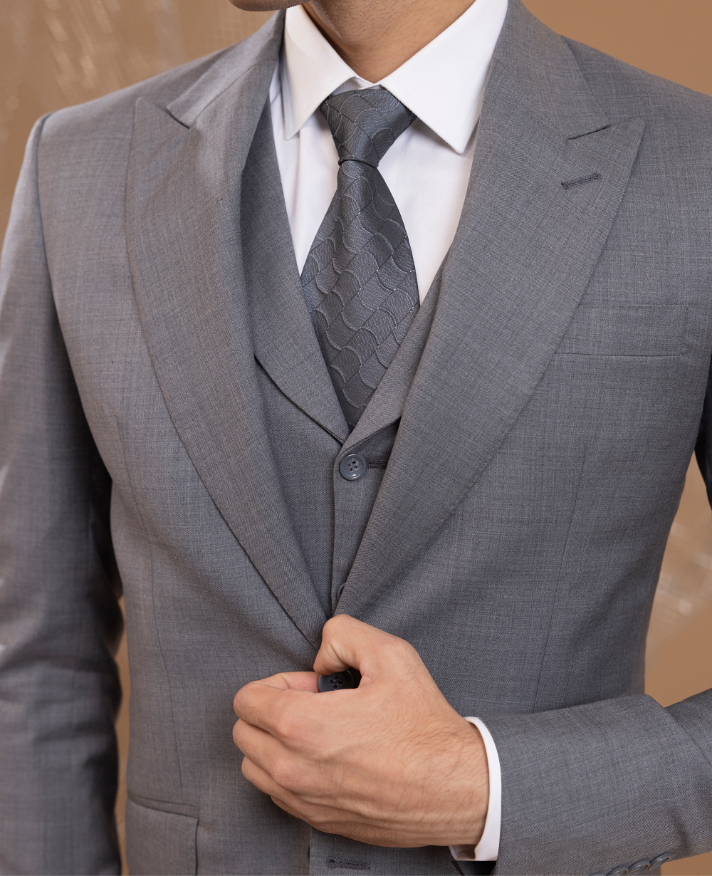 This classic 3-piece grey suit is an essential addition to any wardrobe. Its versatile grey tone makes it suitable for a variety of occasions, from business meetings to formal events. Crafted from high-quality fabric, this suit offers both comfort and style, ensuring a polished look that never goes out of fashion.